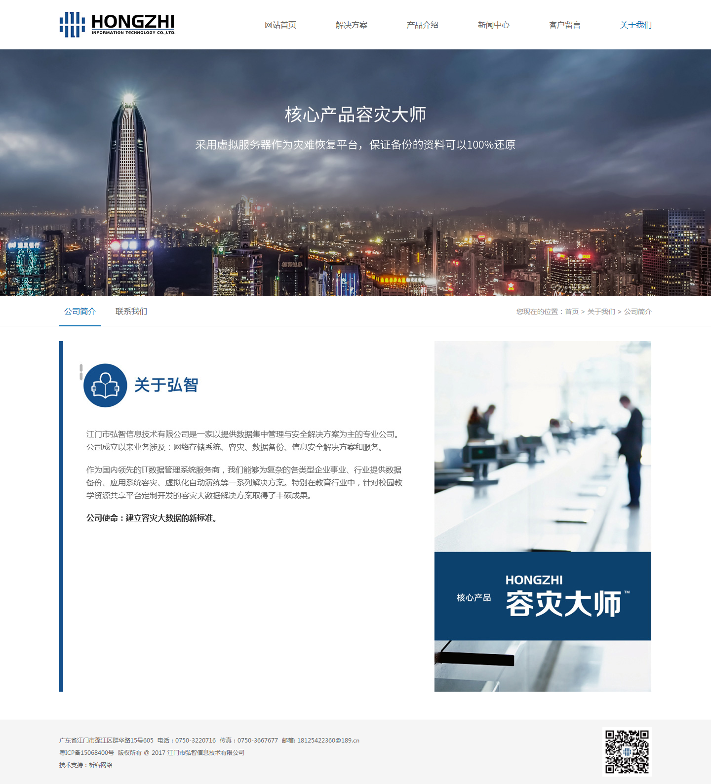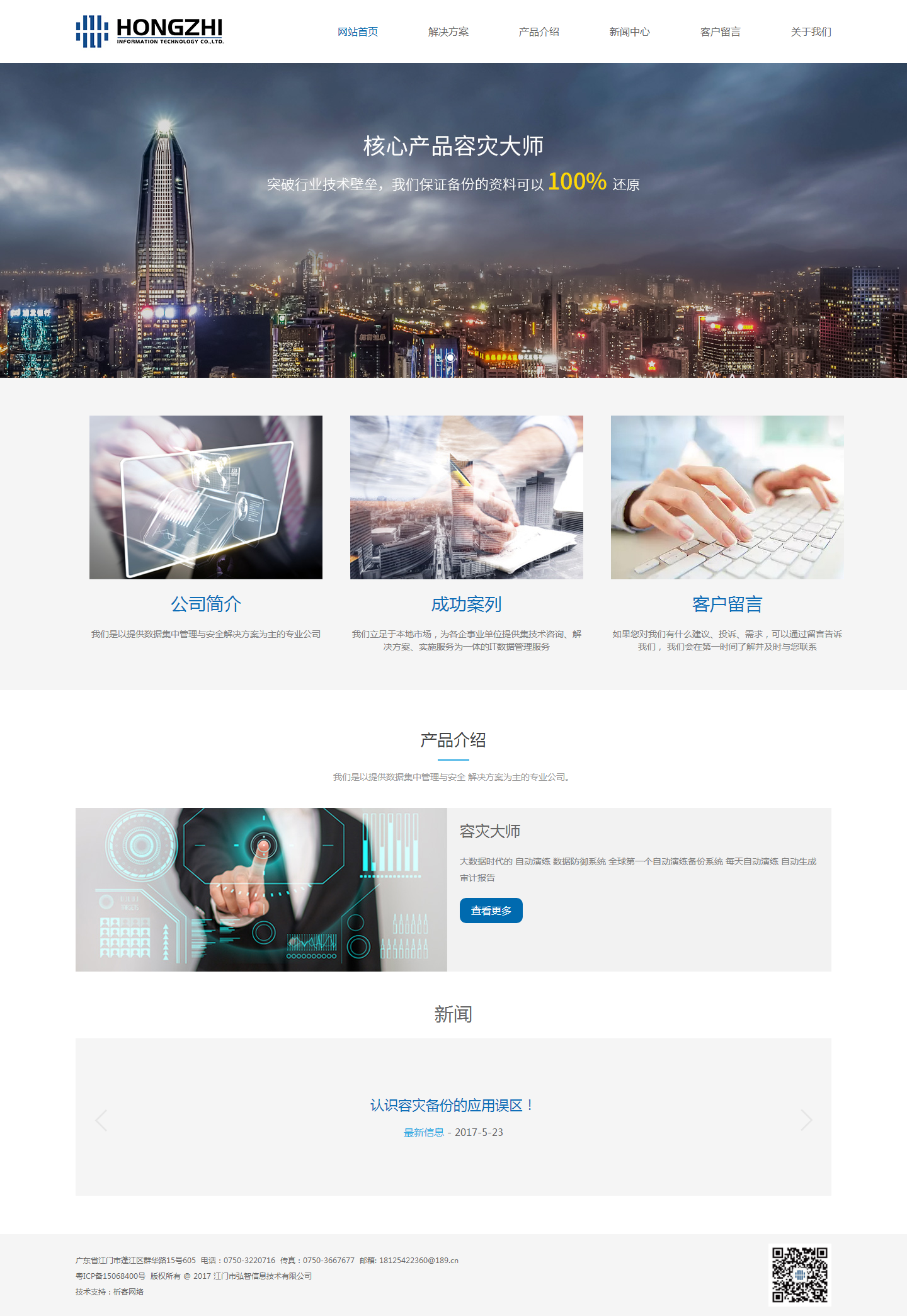 江门市弘智信息技术有限公司是一家以提供数据集中管理与安全解决方案为主的专业公司。公司成立以来业务涉及:网络存储系统、容灾、数据备份、信息安全解决方案和服务、
