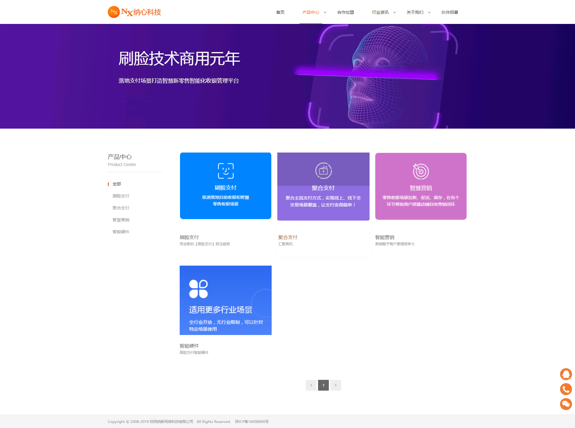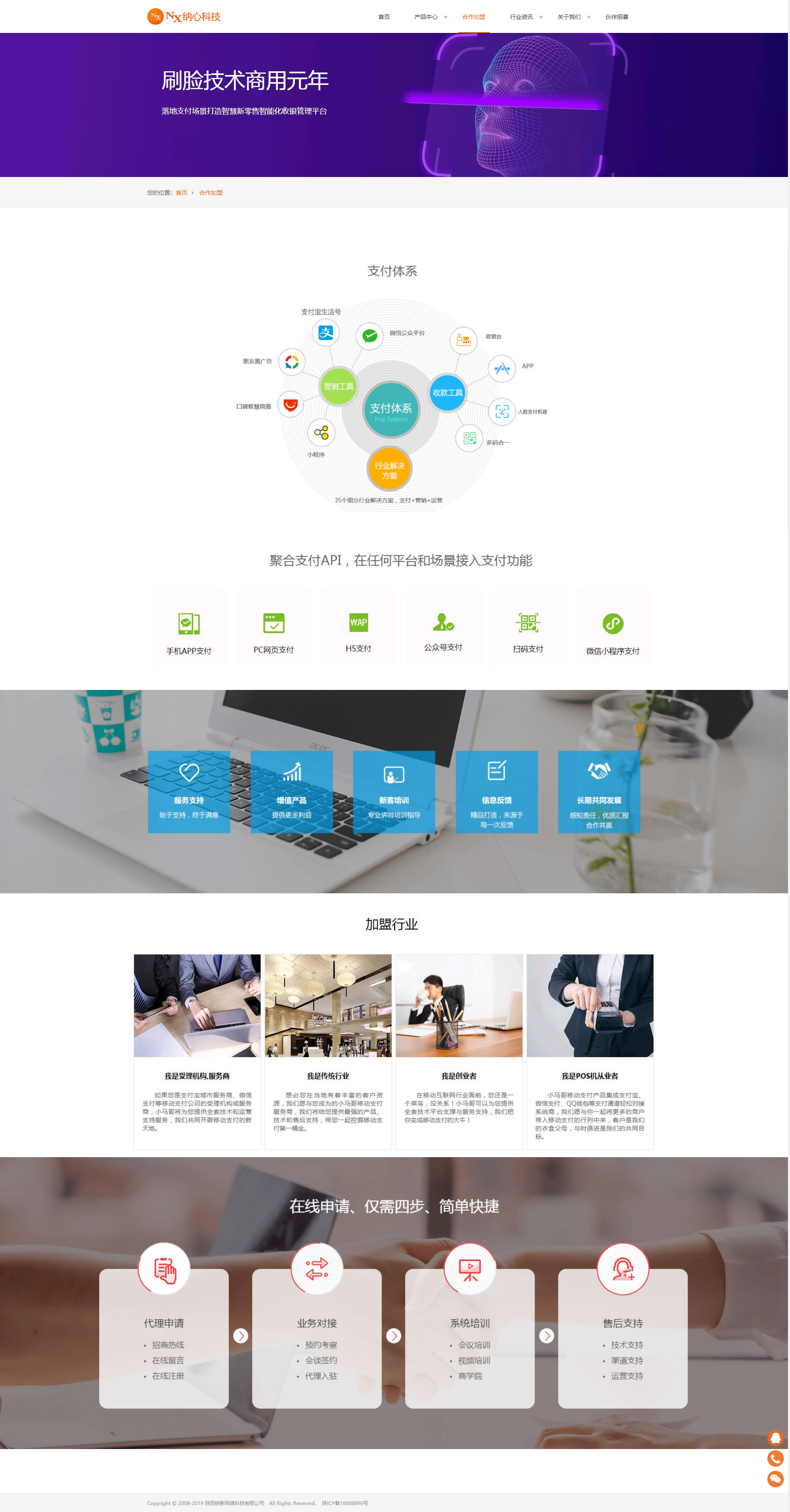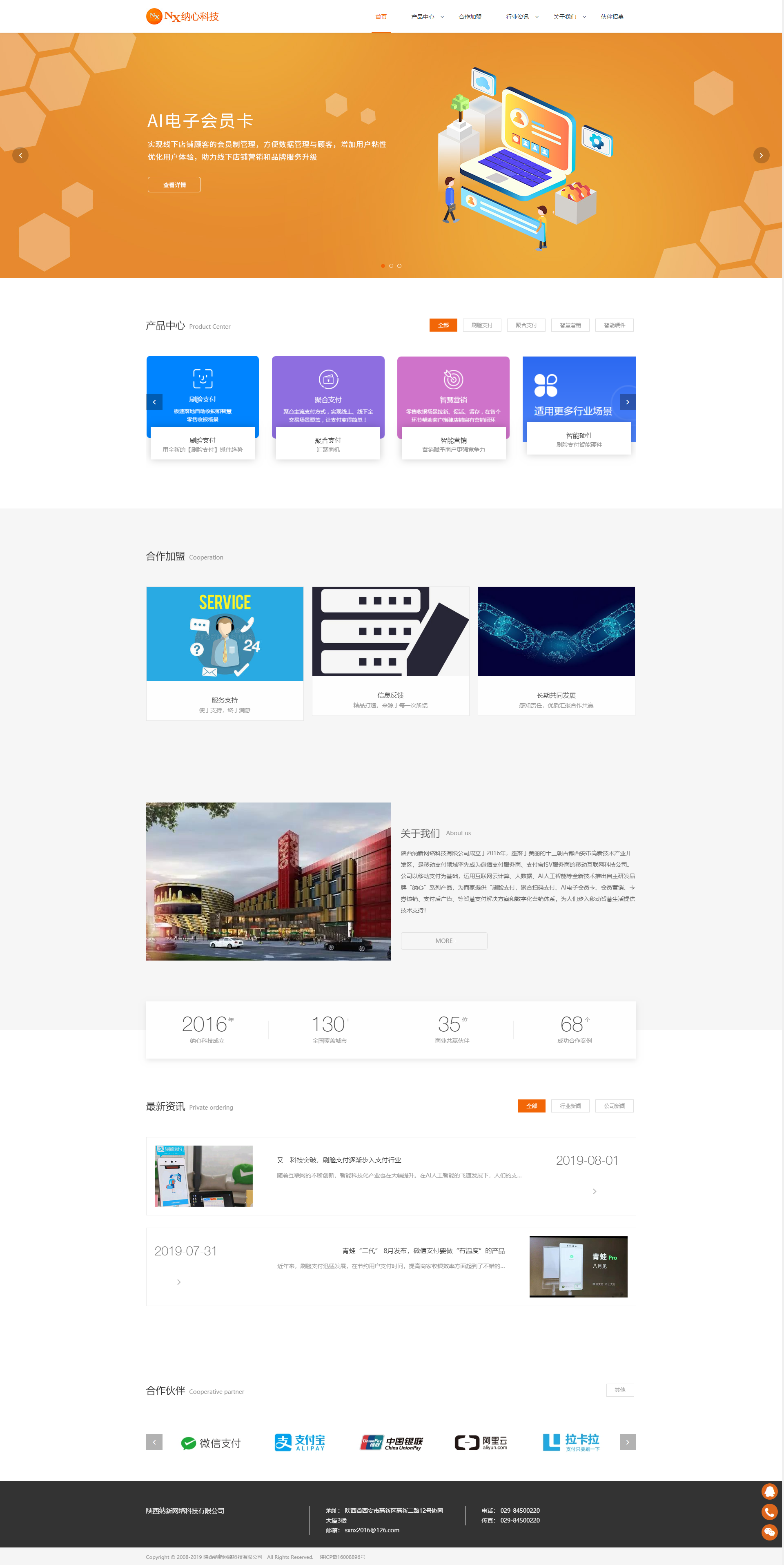 公司以移动支付为基础,运用互联网云计算、大数据、AI人工智能等全新技术推出自主研发品牌“纳心”系列产品,为商家提供“刷脸支付,聚合扫码支付、AI电子会员卡、会员营销、卡券核销、支付后广告、等智慧支付解决方案和数字化营销体系,为人们步入移动智慧生活提供技术支持。