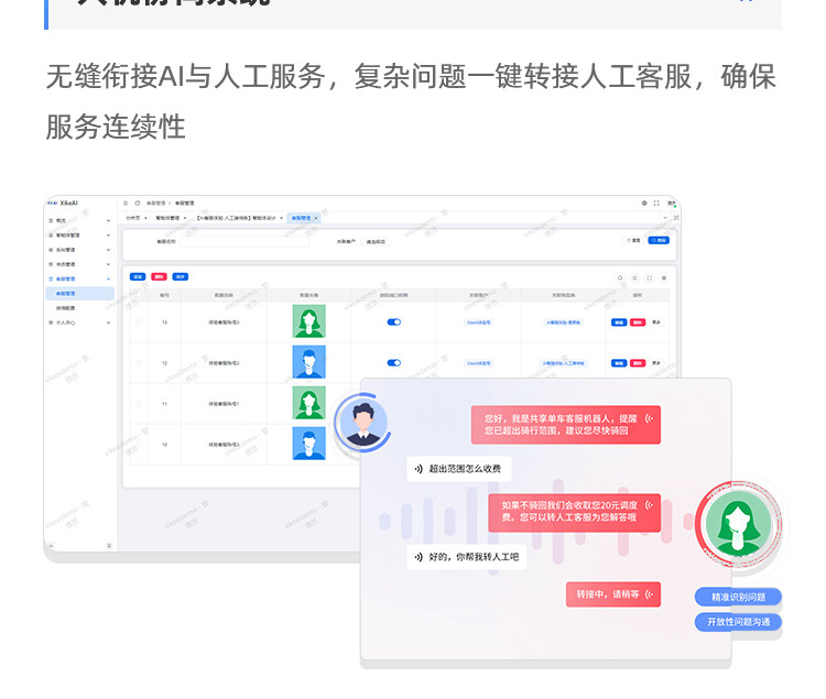 3. 人机协同系统:无缝衔接AI与人工服务,复杂问题一键转接人工客服,确保服务连续性